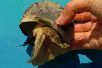 shell after the animal has died is by hermit crabs. The large land hermit crab